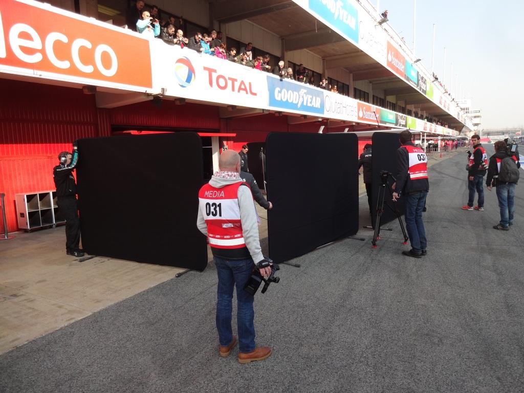 The ironic part of this hiding paranoia is the fact that once doors open, and the cars are released back to the track, teams instruct drivers to stop at the far end of Pit Lane Exit in order to simulate standing starts. Ironic indeed, now leaving exposed cars in the naked eye for all, photographers and rival team members, all present there awaiting on the same stopping spot. Teams are testing their launch systems, and some hit troubles even make embarrassment of stalling during the procedure. Mechanics then have to rush here to push car all the way back to garage, thus allowing photographers even more time to capture the car in detail.