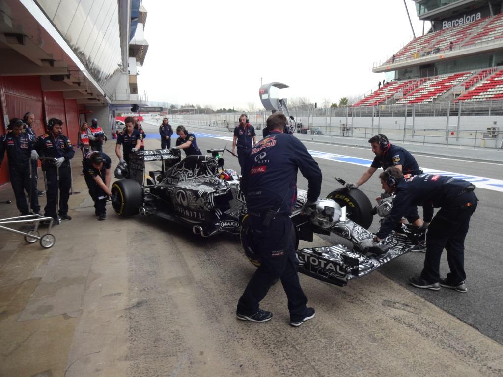 With Barcelona having a longer exit road, an astute Sebastian Vettel, always decides to simulate his standing starts a further 50 meters from the stop light. I am certain Seb is laughing inside his newly designed Arai helmet, making everybody look silly, rushing back and forth…