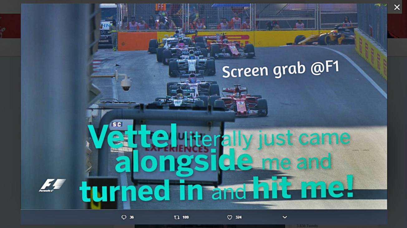 Saturday was always going to be different and so it turned out to be: Red Bull cars never had the pace to challenge Mercedes or Ferrari for pole; Mercs can somehow turn up the heat when it matters, I put it down to their magical mystery Google engine maps. Or was it the Itallyn Stallyns who were burning the midnight engine oil after all? The FIA’s latest warning on oil-burning potentially hurting the performance of Ferrari more than most in Azerbaijan. The lucky boy Ricciardo might’ve done himself a favour with his Q3 crash in hindsight: it was safer at the back on Sunday, a rare occasion!