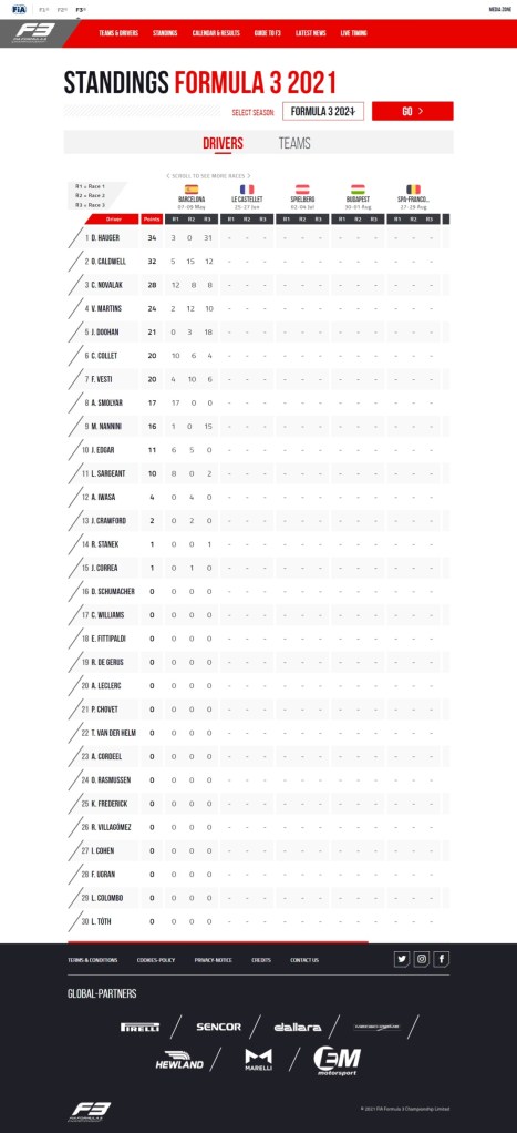 But first, we need to take a closer look at the championship standings, simply click on the image to enlarge.