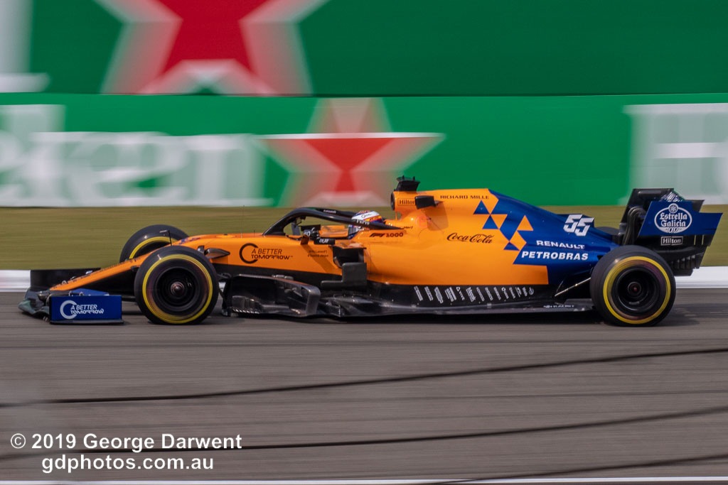 Carlos Sainz (#55) of the McLaren Formula 1 team out on track during the 2019 Chinese Grand Prix weekend.